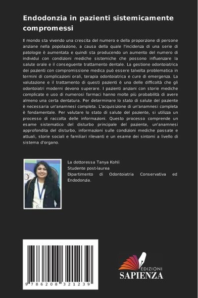 Il mondo sta vivendo una crescita del numero e della proporzione di persone anziane nella popolazione, a causa della quale l'incidenza di una serie di patologie è aumentata e quindi sta producendo un aumento del numero di individui con condizioni mediche sistemiche che possono influenzare la salute orale e il conseguente trattamento dentale. La gestione odontoiatrica dei pazienti con compromissione medica può essere talvolta problematica in termini di complicazioni orali, terapia odontoiatrica e cure di emergenza. La valutazione e il trattamento di questi pazienti è una delle difficoltà che gli odontoiatri moderni devono superare. I pazienti anziani con storie mediche complicate e uso di numerosi farmaci hanno molte più probabilità di avere almeno una certa dentatura. Per determinare lo stato di salute del paziente è necessaria un'anamnesi completa. L'acquisizione di un'anamnesi completa è fondamentale. Per valutare lo stato di salute del paziente, si utilizza un processo di raccolta delle informazioni. Questo processo comprende un esame sistematico del disturbo principale del paziente, un'anamnesi approfondita del disturbo, informazioni sulle condizioni mediche passate e attuali, storie sociali e familiari rilevanti e un esame dei sintomi a livello di sistema d'organo.