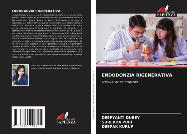 La rigenerazione è il processo di rinnovamento, ripristino e crescita che rende genomi, cellule, organismi ed ecosistemi resilienti alle fluttuazioni naturali o agli eventi che causano disturbi o danni1. Ogni specie è in grado di rigenerarsi, dai batteri all'uomo.2,3 La rigenerazione può essere completa dove il nuovo tessuto è uguale al tessuto perso o incompleta dove dopo il tessuto necrotico viene la fibrosi.4,5,8 Al suo livello più elementare , la rigenerazione è mediata dai processi molecolari della sintesi del DNA.5,6Esiste una sottile distinzione tra riparazione e rigenerazione.8,9,10 Riparazione significa rigenerazione incompleta.9Riparazione o rigenerazione incompleta, si riferisce all'adattamento fisiologico di un organo dopo una lesione in uno sforzo per ristabilire la continuità senza riguardo all'esatta sostituzione del tessuto perso/danneggiato.9 La vera rigenerazione tissutale o rigenerazione completa, si riferisce alla sostituzione del tessuto perso/danneggiato con una copia "esatta", in modo tale che sia la morfologia che la funzionalità siano completamente ripristinate .9,10 Le procedure endodontiche rigenerative (REP) sono state definite come procedure su base biologica progettate per sostituire strutture danneggiate.