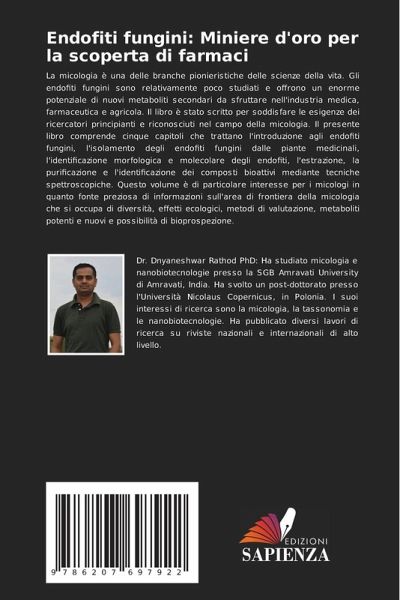 La micologia è una delle branche pionieristiche delle scienze della vita. Gli endofiti fungini sono relativamente poco studiati e offrono un enorme potenziale di nuovi metaboliti secondari da sfruttare nell'industria medica, farmaceutica e agricola. Il libro è stato scritto per soddisfare le esigenze dei ricercatori principianti e riconosciuti nel campo della micologia. Il presente libro comprende cinque capitoli che trattano l'introduzione agli endofiti fungini, l'isolamento degli endofiti fungini dalle piante medicinali, l'identificazione morfologica e molecolare degli endofiti, l'estrazione, la purificazione e l'identificazione dei composti bioattivi mediante tecniche spettroscopiche. Questo volume è di particolare interesse per i micologi in quanto fonte preziosa di informazioni sull'area di frontiera della micologia che si occupa di diversità, effetti ecologici, metodi di valutazione, metaboliti potenti e nuovi e possibilità di bioprospezione.