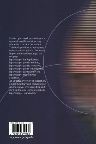 1 Gastroesophageal Reflux Disease.- 2 Laparoscopic Antireflux Surgery in Gastroesophageal Reflux Disease (GERD).- 3 Achalasia: Pathophysiology, Diagnosis, and Nonoperative Treatment.- 4 Laparoscopic Cardiomyotomy for Achalasia.- 5 Pathogenetic Aspects of Obesity.- 6 Adjustable Silicone Gastric Banding.- 7 Totally Laparoscopic Distal Gastrectomy with Extended Lymph Node Dissection.- 8 Laparoscopic Surgery for Early Gastric Cancer: Lesion-Lifting Method and Intragastric Mucosal Resection.- 9. Laparoscopic Gastric Resection and Gastrectomy.