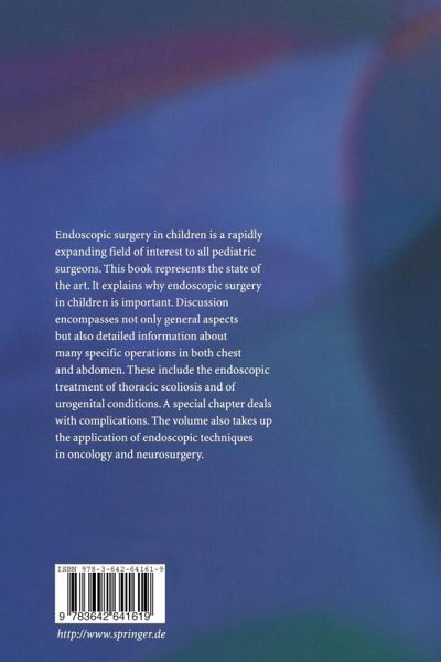 I Basics.- Why Endoscopic Surgery in Children?.- Instrumentation.- Basic Technique.- Ergonomics of Task Performance in Endoscopic Surgery.- Training in Paediatric Endoscopic Surgery.- Basic Physiology and Anesthesia.- II Chest.- Thoracoscopy in Infants and Children: Basic Technique.- Diagnostic Thoracoscopy in Children.- Thoracoscopy in the Treatment of Empyema in Children.- Therapeutic Thoracoscopic Procedures in Children: Indications and Surgical Applications in Lung and Mediastinum.- Thoracoscopic Repair of Hiatal Hernia in Children.- Closure of Patent Ductus Arteriosus.- Vascular Access.- Endoscopic Transthoracic Sympathectomy in the Treatment of Primary Palmar Hyperhidrosis in Children.- Video-Asssisted Repair of Esophageal Atresia.- III: Abdomen: Diagnostic Laparoscopy.- Diagnostic Laparoscopy.- Gastrointestinal Tract.- Laparoscopic Treatment of Achalasia.- Laparoscopic Nissen Fundoplication in Children.- Laparoscopic Toupet Fundoplication.- Laparoscopic Thai Fundoplication in Infants and Children.- Laparoscopic Gastrostomy.- Laparoscopic Antroplasty.- Laparoscopic Extramucosal Pyloromyotomy.- Laparoscopic Jejunostomy.- Laparoscopic Treatment of Anomalies of Intestinal Rotation in Children.- Laparoscopic Approach to Intestinal Obstruction in Children.- Laparoscopic Diagnosis and Treatment of Meckel's Diverticulum in Children.- Intussusception.- Laparoscopic Appendicectomy in Children.- Laparoscopic Total Colectomy.- Laparoscopic Endorectal Pull-Through.- Laparoscopic Removal of the Aganglionic Bowel According to Duhamel-Martin.- Treatment of Hirschsprung's Disease by Laparoscopic Dissection of Bowel, Transanal Eversion and Perineal Resection.- Liver and Biliary Tree.- Endoscopic Surgery for Liver Hydatid Cysts.- Laparoscopic Cholecystectomy.- Spleen.-Laparoscopic Splenectomy.- Diaphragm.- Laparoscopic Repair of Diaphragmatic Conditions in Infants and Children.- Inguinal Hernia.- Contralateral Groin Exploration During Inguinal Hernia Repair.- Shunts and Catheters.- Laparoscopic Approach to Ventriculoperitoneal Shunts.- Laparoscopic Insertion of Peritoneal Dialysis Catheters in Children.- Complications.- Complications in Laparoscopic Surgery in Children.- IV Urogenital Tract.- Transperitoneal Laparoscopic Nephrectomy.- Videosurgery of the Retroperitoneal Space in Children.- The Nonpalpable Testis.- Laparoscopic Varicocele.- Adnexal Pathology.- Laparoscopy and Intersex.- V Orthopedics and Neurosurgery.- Thoracoscopic Anterior Spinal Diskectomy and Fusion.- Indications, Techniques and Results of Pediatric Neuroendoscopy.- VI Oncology.- Endoscopic Surgery in Paediatric Oncology.- VII Conclusion.- The Future of Endoscopic Surgery in Children.