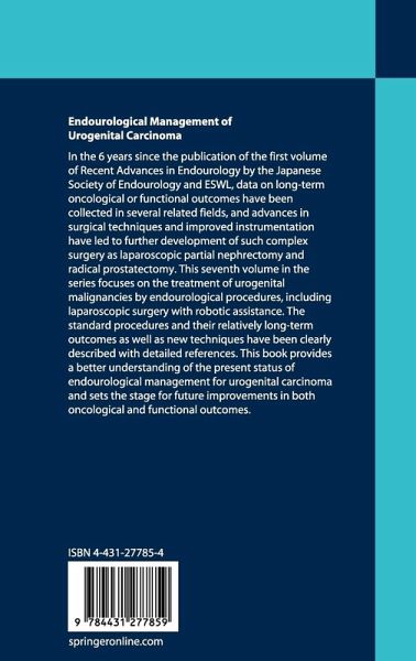 In the 6 years since the publication of the first volume of Recent Advances in Endourology by the Japanese Society of Endourology and ESWL, data on long-term oncological or functional outcomes have been collected in several related fields, and advances in surgical techniques and improved instrumentation have led to further development of such complex surgery as laparoscopic partial nephrectomy and radical prostatectomy. This seventh volume in the series focuses on the treatment of urogenital malignancies by endourological procedures, including laparoscopic surgery with robotic assistance. The standard procedures and their relatively long-term outcomes as well as new techniques have been clearly described with detailed references. This book provides a better understanding of the present status of endourological management for urogenital carcinoma and sets the stage for future improvements in both oncological and functional outcomes.