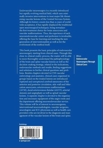 "This book presents personal case illustrations of commonly used endovascular procedures for various arteriovenous malformations of the brain and the spine. ... It is appropriate for interventional neuroradiologists and neurosurgical trainees as well as established practitioners. It also can be helpful for neurologists and diagnostic neuroradiologists. ... The book is handy, to the point, and carries the weight of years of experience." (Ramsis Farid Ghaly, Doody's Book Reviews, May, 2015)