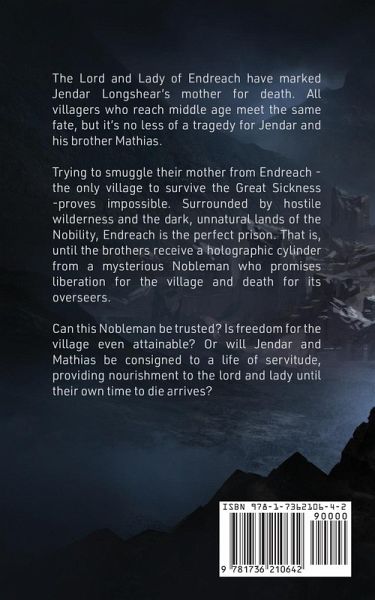 Centuries after a cataclysm nearly wiped out the human population, the world has become a wasteland filled with danger and despair. Amidst the ruins, only the village of Endreach remains, where humans live in fear of the insidious Nobility - an immortal race who rose from the ashes of humanity's destruction. Surrounded by hostile wilderness and the night-shrouded lands of the Nobility, the denizens of Endreach lead a life both simple and short: technology is forbidden, and all who reach middle age are executed. When Jendar Longshear's mother is marked for death, he and his brother embark on a treacherous journey through the western woods to the sprawling ruins in the neighboring valley - where they meet a mysterious nobleman who offers to help them overthrow Endreach's cruel leaders. As the brothers learn the truth about the nature of their overlords, they're left with one question: can they truly stop the Nobility, or will humanity be imprisoned forever? Featuring pulse-pounding action, intricate world-building, and a cast of unforgettable characters, this post-apocalyptic science fantasy novel will keep you on the edge of your seat.