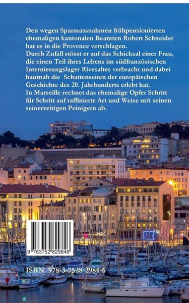 Den wegen Sparmassnahmen frühpensionierten ehema-ligen kantonalen Beamten Robert Schneider hat es in die Provence verschlagen. Durch Zufall stösst er auf das Schicksal einer Frau, die einen Teil ihres Lebens im südfranzösischen Internie-rungslager Rivesaltes verbracht und dabei hautnah die Schattenseiten der europäischen Geschichte des 20. Jahrhunderts erlebt hat. In Marseille rechnet das ehemalige Opfer Schritt für Schritt auf raffinierte Art und Weise mit ihren seinerzei-tigen Peinigern ab.