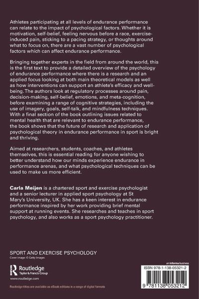 "As both an exercise scientist and a runner, I have always been intrigued by the interaction between physical and psychological performance during endurance activities. In this innovative text, Carla Meijen explores the psychology of human endurance including pain management, decision-making, self-belief and motivation. Drawing on expertise from a range of world-leading specialists, Meijen clearly articulates the scientific and cognitive basis behind many of the psychological factors that influence endurance performance, whilst providing self-help guidelines that will be of benefit to both coaches and athletes. The text should be of interest to scientists and practitioners who have an interest in endurance sport, or to anyone who wishes to better understand their own body, and how best to cope with the mental challenges that are an integral part of human endurance performance." - Professor John Brewer, Deputy Vice-Chancellor, Buckinghamshire New University, UK.