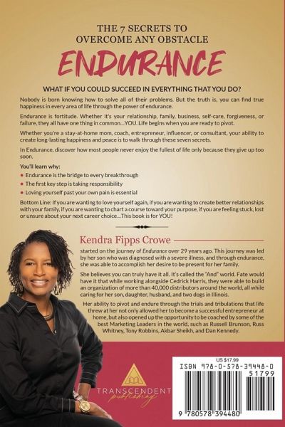 What if You Could Succeed in Everything That You Do? Nobody is born knowing how to solve all of their problems. But the truth is, you can find true happiness in every area of life through the power of endurance. Endurance is fortitude. Whether it's your relationship, family, business, self-care, forgiveness, or failure, they all have one thing in common...YOU. Life begins when you are ready to pivot. Whether you're a stay-at-home mom, coach, entrepreneur, influencer, or consultant, your ability to create long-lasting happiness and peace is to walk through these seven secrets. In Endurance, discover how most people never enjoy the fullest of life only because they give up too soon. You'll learn why: · Endurance is the bridge to every breakthrough · The first key step is taking responsibility· Loving yourself past your own pain is essential Bottom Line: If you are wanting to love yourself again, if you are wanting to create better relationships with your family, if you are wanting to chart a course toward your purpose, if you are feeling stuck, lost or unsure about your next career choice...This book is for YOU!