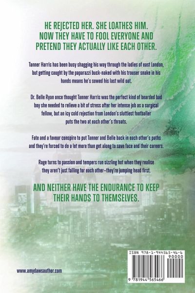 He rejected her. She loathes him. Now they have to fool everyone and pretend they actually like each other. Tanner Harris has been busy shagging his way through the ladies of east London, but getting caught by the paparazzi buck-naked with his trouser snake in his hands means he's sowed his last wild oat. Dr. Belle Ryan once thought Tanner Harris was the perfect kind of bearded bad boy she needed to relieve a bit of stress after her intense job as a surgical fellow, but an icy cold rejection from London's sluttiest footballer puts the two at each other's throats. Fate and a favour conspire to put Tanner and Belle back in each other's paths and they're forced to do a lot more than get along to save face and their careers. Rage turns to passion and tempers run sizzling hot when they realise they aren't just falling for each other-they're jumping head first. And neither have the endurance to keep their hands to themselves.