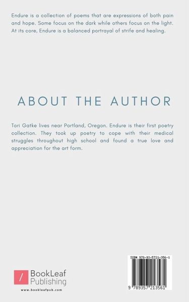 Endure is a collection of poems that are expressions of both pain and hope. Some focus on the dark while others focus on the light. At its core, Endure is a balanced portrayal of strife and healing.
