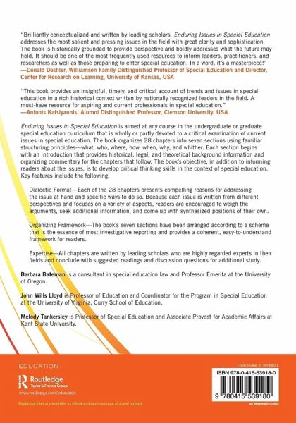 Enduring Issues in Special Education is aimed at any course in the undergraduate or graduate special education curriculum that is wholly or partly devoted to a critical examination of current issues in special education.
