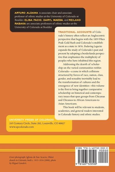Traditional accounts of Colorado's history often reflect an Anglocentric perspective that begins with the 1859 Pikes Peak Gold Rush and Colorado's establishment as a state in 1876. Enduring Legacies expands the study of Colorado's past and present by adopting a borderlands perspective that emphasizes the multiplicity of peoples who have inhabited this region.