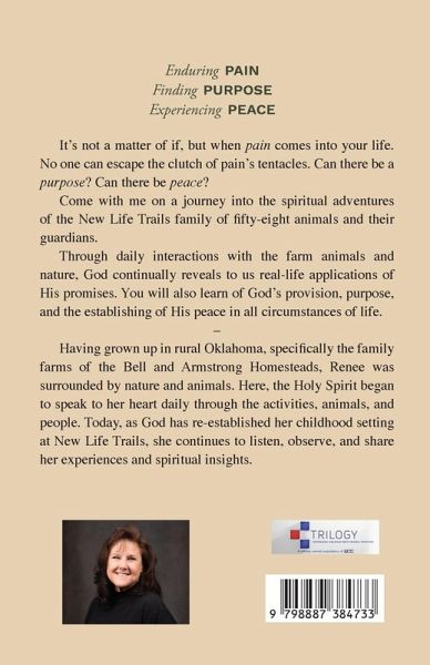 Enduring PAIN Finding PURPOSE Experiencing PEACE It's not a matter of if, but when pain comes into your life. No one can escape the clutch of pain's tentacles. Can there be a purpose? Can there be peace? Come with me on a journey into the spiritual adventures of the New Life Trails family of fifty-eight animals and their guardians. Through daily interactions with the farm animals and nature, God continually reveals to us real-life applications of His promises. You will also learn of God's provision, purpose, and the establishing of His peace in all circumstances of life.