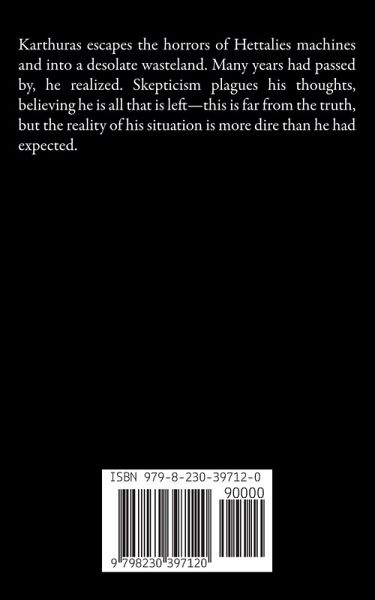 Karthuras escapes the horrors of Hettalies machines and into a desolate wasteland. Many years had passed by, he realized. Skepticism plagues his thoughts, believing he is all that is left-this is far from the truth, but the reality of his situation is more dire than he had expected.