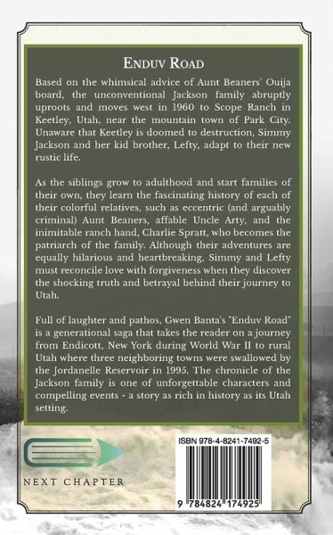 Based on the whimsical advice of Aunt Beaners' Ouija board, the unconventional Jackson family abruptly uproots and moves west in 1960 to Scope Ranch in Keetley, Utah, near the mountain town of Park City. Unaware that Keetley is doomed to destruction, Simmy Jackson and her kid brother, Lefty, adapt to their new rustic life. As the siblings grow to adulthood and start families of their own, they learn the fascinating history of each of their colorful relatives, such as eccentric (and arguably criminal) Aunt Beaners, affable Uncle Arty, and the inimitable ranch hand, Charlie Spratt, who becomes the patriarch of the family. Although their adventures are equally hilarious and heartbreaking, Simmy and Lefty must reconcile love with forgiveness when they discover the shocking truth and betrayal behind their journey to Utah. Full of laughter and pathos, Gwen Banta's "Enduv Road" is a generational saga that takes the reader on a journey from Endicott, New York during World War II to rural Utah where three neighboring towns were swallowed by the Jordanelle Reservoir in 1995. The chronicle of the Jackson family is one of unforgettable characters and compelling events - a story as rich in history as its Utah setting.