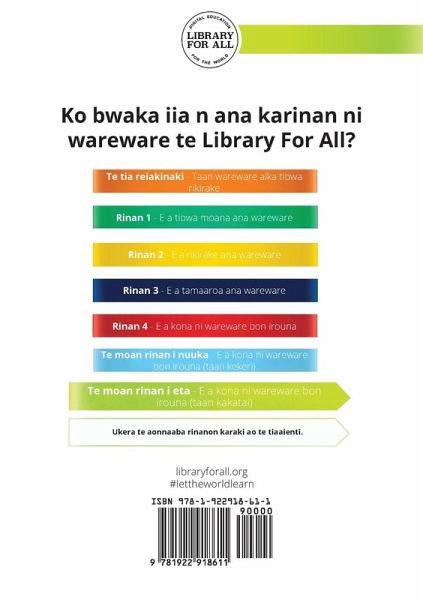 There are things that good for the heart and some other bad things. We could be in trouble if we don't take good care of our heart. Iai bwaai aika e taatangirii te buroo ao iai naba baika e riiribai. E kona n reke te kaangaanga nakoira ngkana ti aki tararuaa raoi buroora. Your purchase of this book supports Library For All in its mission to make knowledge available to all, equally.