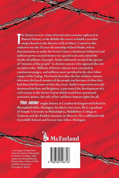 The Soviet era was a time of social and economic upheaval in Russia's history as the Bolsheviks strove to build a socialist utopia based on the theories of Karl Marx. Central to this endeavor was the 25-year dictatorship of Josef Stalin, whose determination to make the Soviet Union a dominant industrial and military power created misery on a grand scale and caused the deaths of millions of people. Stalin arbitrarily invoked the specter of "enemies of the people" to destroy anyone who opposed the new socialist order. Millions of Soviet citizens were executed in continuous purges, and millions more perished in the slave labor camps of the Gulag. This book describes the fate of those citizens who were declared enemies of the people not because of what they had done but because of who they were. Stalin's repression not only destroyed the best and brightest, it prevented the development of a civil society in the Soviet Union which would have promoted economic justice, the rule of law and basic human rights for all.