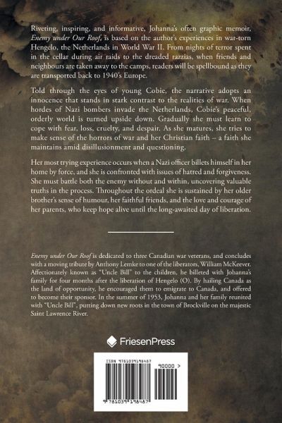 Riveting, inspiring, and informative, Johanna's often graphic memoir, Enemy under Our Roof, is based on the author's experiences in war-torn Hengelo, the Netherlands in World War II. From nights of terror spent in the cellar during air raids t...