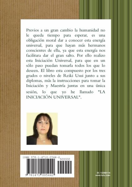 Previos a un gran cambio la humanidad no le queda tiempo para esperar, es una obligación moral dar a conocer esta energía universal, para que hayan más hermanos conscientes de ella, ya que esta energía nos facilitara dar el gran salto. Por ello realizo esta Iniciación Universal, para que puedan tomarla todos los que lo deseen. El libro esta compuesto por los tres grados o niveles de Reiki Usui junto a sus diplomas, más la instrucciones para tomar la Iniciación y Maestría juntas en una única sesión.