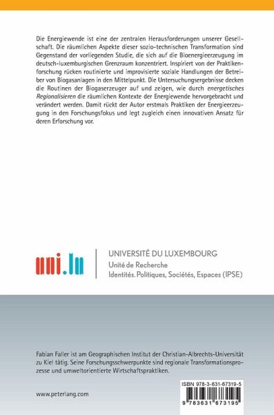 Die Energiewende ist eine der zentralen Herausforderungen unserer Gesellschaft. Die räumlichen Aspekte dieser sozio-technischen Transformation sind Gegenstand der vorliegenden Studie, die sich auf die Bioenergieerzeugung im deutsch-luxemburgischen Grenzraum konzentriert. Inspiriert von der Praktikenforschung rücken routinierte und improvisierte soziale Handlungen der Betreiber von Biogasanlagen in den Mittelpunkt. Die Untersuchungsergebnisse decken die Routinen der Biogaserzeuger auf und zeigen, wie durch energetisches Regionalisieren die räumlichen Kontexte der Energiewende hervorgebracht und verändert werden. Damit rückt der Autor erstmals Praktiken der Energieerzeugung in den Forschungsfokus und legt zugleich einen innovativen Ansatz für deren Erforschung vor.