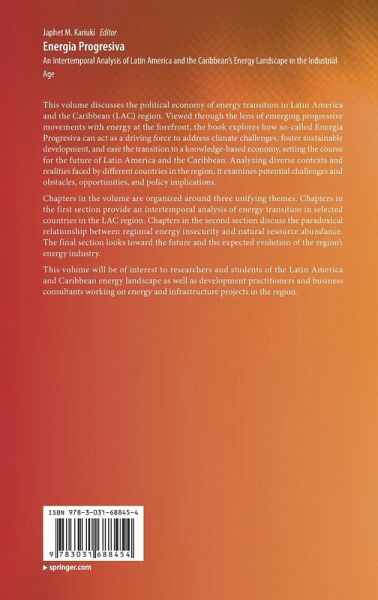 This volume discusses the political economy of energy transition in Latin America and the Caribbean (LAC) region. Viewed through the lens of emerging progressive movements with energy at the forefront, the book explores how so-called Energia Progresiva can act as a driving force to address climate challenges, foster sustainable development, and ease the transition to a knowledge-based economy, setting the course for the future of Latin America and the Caribbean. Analyzing diverse contexts and realities faced by different countries in the region, it examines potential challenges and obstacles, opportunities, and policy implications.
