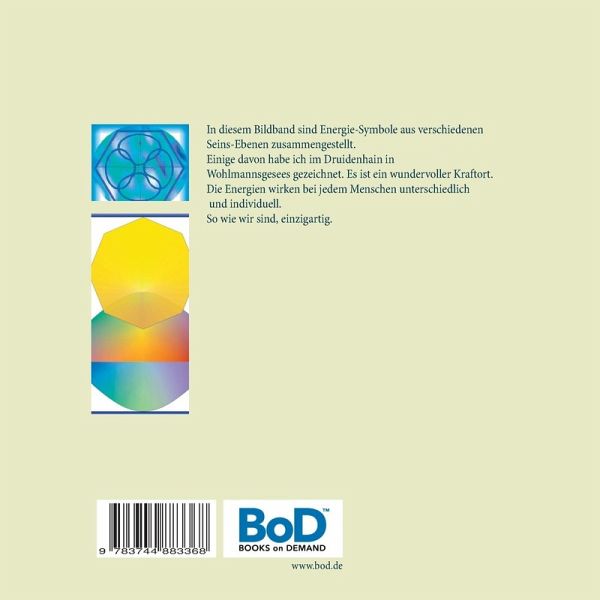 In diesem Bildband sind Energie-Symbole aus verschiedenen Seins-Ebenen zusammengestellt.Einige davon habe ich im Druidenhain in Wohlmannsgesees gezeichnet. Es ist ein wundervoller Kraftort.Die Energien wirken bei jedem Menschen unterschiedlich und individuell.So wie wir sind, einzigartig.Lassen sie sich zu sich selbst führen und erkennen sie, wie wunderbar sie sind.