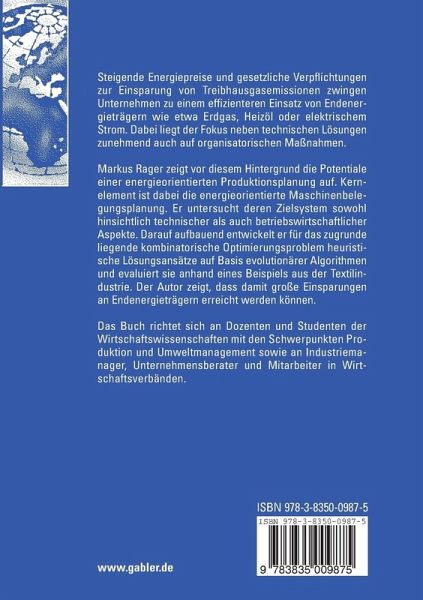 Markus Rager zeigt vor diesem Hintergrund die Potentiale einer energieorientierten Produktionsplanung auf. Kernelement ist dabei die energieorientierte Maschinenbelegungsplanung. Er untersucht deren Zielsystem sowohl hinsichtlich technischer als auch betriebswirtschaftlicher Aspekte. Darauf aufbauend entwickelt er für das zugrunde liegende kombinatorische Optimierungsproblem heuristische Lösungsansätze auf Basis evolutionärer Algorithmen und evaluiert sie anhand eines Beispiels aus der Textilindustrie. Der Autor zeigt, dass damit große Einsparungen an Endenergieträgern erreicht werden können.