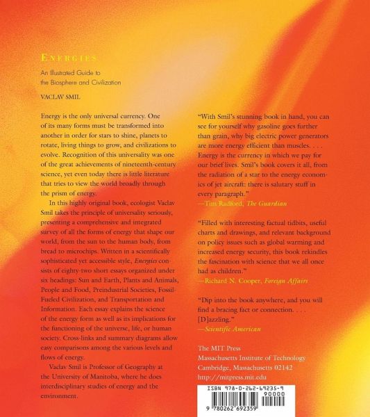 Energy is the only universal currency. One of its many forms must be transformed into another in order for stars to shine, planets to rotate, living things to grow, and civilizations to evolve. Recognition of this universality was one of the great achievements of nineteenth-century science, yet even today there is little literature that tries to view the world broadly through the prism of energy.In this highly original book, ecologist Vaclav Smil takes the principle of universality seriously, presenting a comprehensive and integrated survey of all the forms of energy that shape our world, from the sun to the human body, from bread to microchips. Written in a scientifically sophisticated yet accessible style, Energies consists of eighty-two short essays organized under six headings: Sun and Earth, Plants and Animals, People and Food, Preindustrial Societies, Fossil-Fueled Civilization, and Motion and Information. Each essay explains the science of the energy form as well as its implications for the functioning of the universe, life, or human society. Cross-links and summary diagrams allow easy comparisons among the various levels and flows of energy.