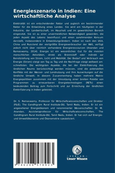 Elektrizität ist ein entscheidender Faktor und zugleich ein bestimmender Faktor für die Entwicklung eines Landes. Sie wird am häufigsten in der Industrie, der Landwirtschaft, im Haushalt und im gewerblichen Bereich eingesetzt. Sie ist zu einer unvermeidlichen Notwendigkeit geworden, die jeden Aspekt des Lebens beeinflusst und einen zunehmenden Konsum darstellt, insbesondere in Entwicklungsländern. Indien ist nach den USA, China und Russland der viertgrößte Energieverbraucher der Welt, verfügt jedoch nicht über reichlich vorhandene Energieressourcen (Anandan und Ramaswamy, 2014). Energie ist ein wesentliches Gut für die meisten menschlichen Aktivitäten, direkt als Brennstoff oder indirekt zur Bereitstellung von Strom, Licht und Mobilität. Der Bedarf und Verbrauch von Energie (Strom) steigt von Tag zu Tag und die Nachfrage steigt weltweit am schnellsten. Die wichtigsten Aspekte, die bei der Elektrifizierung des ländlichen Raums berücksichtigt werden müssen, sind die potenziellen Konflikte mit der Wasser- und Landnutzung und ihre Auswirkungen auf die ländliche Umwelt. In diesem Zusammenhang haben mehrere Makro-Energiepolitiken zusammen mit der Umsetzung einer breiten Palette von Programmen zu erneuerbaren Energietechnologien (RETs) einen bedeutenden Beitrag zum Fortschritt und zur Erreichung der ländlichen Elektrifizierung in Indien geleistet.