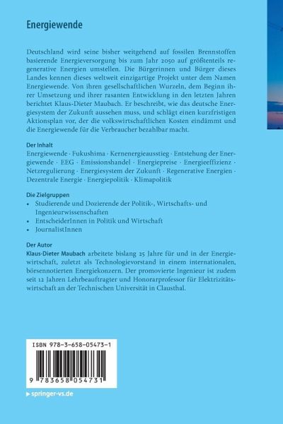 Deutschland wird seine bisher weitgehend auf fossilen Brennstoffen basierende Energieversorgung bis zum Jahr 2050 auf größtenteils regenerative Energien umstellen. Die Bürgerinnen und Bürger dieses Landes kennen dieses weltweit einzigartige Projekt unter dem Namen Energiewende. Von ihren gesellschaftlichen Wurzeln, dem Beginn ihrer Umsetzung und ihrer rasanten Entwicklung in den letzten Jahren berichtet Klaus-Dieter Maubach. Er beschreibt, wie das deutsche Energiesystem der Zukunft aussehen muss, und schlägt einen kurzfristigen Aktionsplan vor, der die volkswirtschaftlichen Kosten eindämmt und die Energiewende für die Verbraucher bezahlbar macht.
