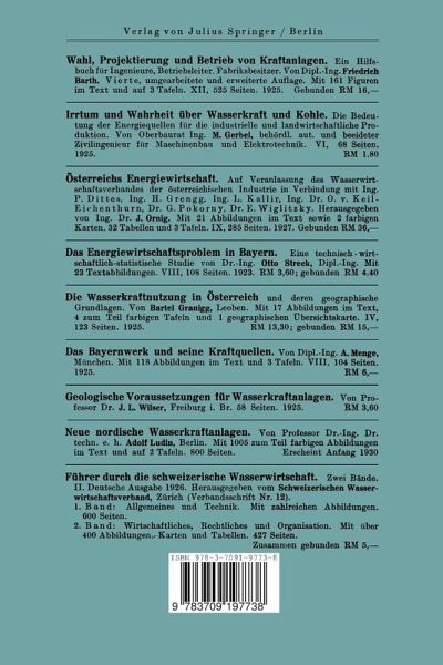 I. Kalorische Energieerzeugung.- 1. Eigenschaften und Darstellung des Energieflusses.- 2. Kosten der kalorischen Energieerzeugung.- B) Erzeugungskosten kalorischer Werke.- 3. Kosten der elektrischen Übertragung der Energie.- 4. Die Spaltung der Energieerzeugung.- II Hydraulische Energieerzeugung.- 1. Eigenschaften und Darstellung der Abflußverhältnisse einer Wasserkraft.- 2. Elemente der hydraulischen Energieerzeugung.- 3. Beurteilung der Ertragsaussichten einer Wasserkraft.- 4. Ausbau der Wasserkräfte für den anpassungsfähigen Bedarf.- III. Hydrokalorische Verbundbetriebe.- 1. Die Laufkraftwerke in der Energieerzeugung.- 2. Die Speicherwasserkräfte in der Energieerzeugung.- 3. Sicherung des Ausbaues des hydraulischen Werkes durch Pump-speicherung.- IV. Bau- und Betriebsweise von hydrokalorischen Verbundbetrieben in der modernen Energiewirtschaft.- 1. Bedingungen der Konkurrenzfähigkeit.- 2. Richtlinien zum Sparen an Anlagekosten von hydraulischen Werken.- 3. Die systematische Energiewirtschaft.