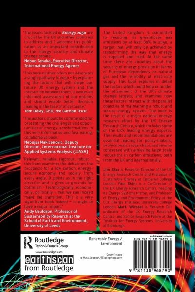 Jim Skea is Professor of Sustainable Energy at Imperial College London and Research Director of the Energy Research Centre. His research interests are in energy, climate change and technological innovation. Jim is a founding member of the UK's Committee on Climate Change and a Vice-Chair of the Intergovernmental Panel on Climate Change Working Group III (climate change mitigation). Paul Ekins has a PhD in economics from the University of London and is a Co-Director of the UK Energy Research Centre, heading its Energy Systems theme. He is Professor of Energy and Environment Policy at the UCL Energy Institute, University College London. His academic work focuses on the conditions and policies for achieving an environmentally sustainable economy, with a special focus on energy technologies and policy, innovation, the role of economic instruments, sustainability assessment and environment and trade. Mark Winskel is Research Co-ordinator of the UK Energy Research Centre, and Senior Research Fellow in the Institute for Energy Systems, University of Edinburgh. He has held a number of research grant awards on innovation in energy systems. He has an interdisciplinary education across the natural, environmental and social sciences, and his PhD addressed technological change in the UK power supply sector.