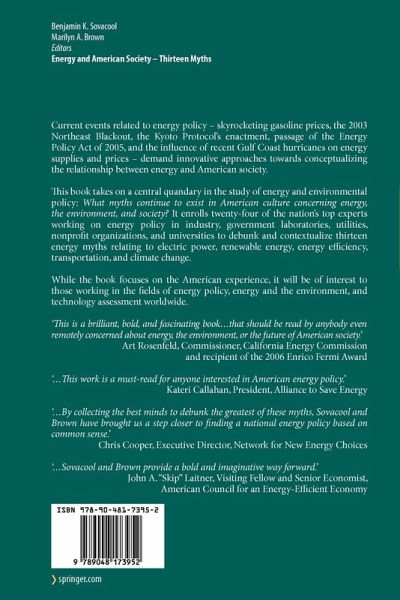 "Benjamin K. Sovacool and Marilyn A. Brown, using a similar pedagogic device, have developed a list of thirteen of their own myths ... . My wish is that this fine book would be more available to and more appealing to a wider audience. Its messages are too important ... . The material on the Thirteen Myths deserves ... a wide audience, an audience that is out there, interested,motivated, and-armed with the information in this book-capable of driving change." (Martin J. Pasqualetti, Annals of the Association of American Geographers, Vol. 98 (2), 2008)
