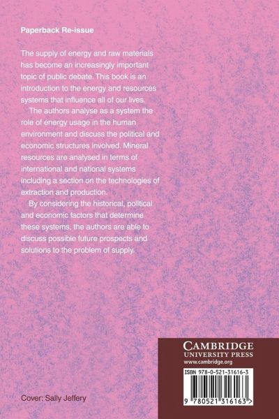 The supply of energy and raw materials has become an increasingly important topic of public debate. This book is an introduction to the energy and resources systems that influence all of our lives. The authors analyse as a system the role of energy usage in the human environment and discuss the political and economic structure involved. Mineral resources are analysed in terms of international and national systems including a section on the technologies of extraction and production. By considering the historical, political, and economic factors that determine these systems, the authors are able to discuss possible future prospects and solutions to the problem of supply.