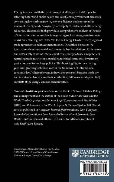 Introduction 1. Foundations of the Energy-Environment Nexus and International Economic Law 2. Energy Trade Control and Environmental Protection 3. Energy Subsidies and the Environment 4. Pro-Environmental Energy Standards and Trade 5. Energy Investment Regulation and the Environment 6. Energy and Green Technologies Conclusion Bibliography Index.