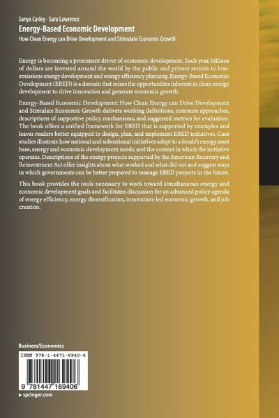 Energy-based economic development: How clean energy can drive development and stimulate economic growth delivers working definitions, common approaches, descriptions of supportive policy mechanisms, and suggested metrics for evaluation. The book offers a unified framework for EBED that is supported by examples and leaves readers better equipped to design, plan, and implement EBED initiatives. Case studies illustrate how national and subnational initiatives adopt to a locale's energy asset base, energy and economic development needs, and the context in which the initiativeoperates. Descriptions of the energy projects supported by the American Recovery and Reinvestment Act offer insights about what worked and what did not and suggest ways in which governments can be better prepared to manage EBED projects in the future.
