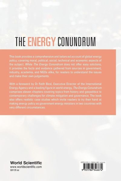 This book provides a comprehensive and balanced account of global energy policy; covering moral, political, social, technical and economic aspects of the subject. While The Energy Conundrum does not offer easy solutions, it provides the facts and evidence gathered from sources in government, industry, academia, and NGOs alike, for readers to understand the issues and make their own judgements. With a foreword by Dr Fatih Birol, Executive Director of the International Energy Agency and a leading figure in world energy, The Energy Conundrum comprises eleven chapters covering topics from history and geopolitics to contemporary challenges for climate mitigation and governance. The book also offers realistic case studies which invite readers to try their hand at making energy policy as government energy ministers in two countries with very different circumstances.