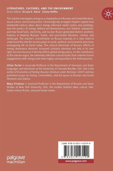 This volume investigates energy as a shaping force in Russian and Soviet literature, visual culture, and social practice. Chronologically arranged chapters explain how nineteenth-century ideas about energy informed realist novels and paintings; how the poetics of energy defined pre-Revolutionary and Stalinist utopianism; and how fossil fuels, electricity, and nuclear fission generated distinct aesthetic features in Imperial Russian, Soviet, and post-Soviet literature, cinema, and landscape. The volume's concentration on Russia responds to a clear need to understand the role the country plays in social, political, and economic processes endangering life on Earth today. The cultural dimension of Russia's efforts at energy dominance deserves increased scholarly attention not only in its own right, but also because it directly affects global energy policy. As the contributors to this volume argue, the nationally inflected cultural myths that underlie human engagements with energyhave been highly consequential in the Anthropocene.