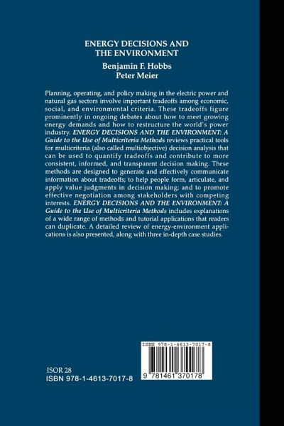 Planning, operating, and policy making in the electric utility and natural gas sectors involves important trade-offs among economic, social, and environmental criteria. These trade-offs figure prominently in ongoing debates about how to meet growing energy demands and how to restructure the world's power industry. Energy Decisions and the Environment: A Guide to the Use of Multicriteria Methods reviews practical tools for multicriteria (also called multiobjective) decision analysis that can be used to quantify trade-offs and contribute to more consistent, informed, and transparent decision…mehr