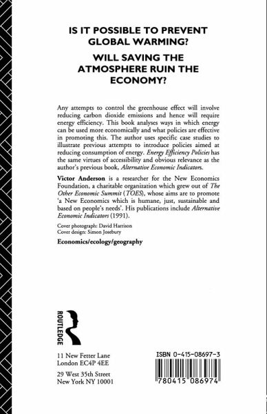 Any attempts to control the greenhouse effect will involve reducing carbon dioxide emissions and therefore requires energy efficiency. Victor Anderson analyses ways in which energy can be used more economically and discusses effective policies for promoting this. Specific case studies are used to illustrate previous attempts to introduce policies aimed at reducing consumption of energy and offers a practical and topical guide to tackling the effects of global warming in the future.