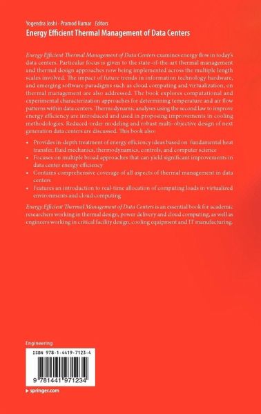 Energy Efficient Thermal Management of Data Centers examines energy flow in today's data centers. Particular focus is given to the state-of-the-art thermal management and thermal design approaches now being implemented across the multiple length scales involved. The impact of future trends in information technology hardware, and emerging software paradigms such as cloud computing and virtualization, on thermal management are also addressed. The book explores computational and experimental characterization approaches for determining temperature and air flow patterns within data centers. Thermodynamic analyses using the second law to improve energy efficiency are introduced and used in proposing improvements in cooling methodologies. Reduced-order modeling and robust multi-objective design of next generation data centers are discussed.