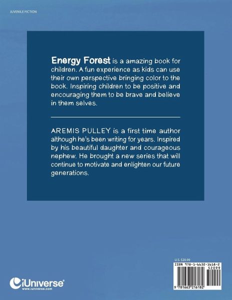 Energy Forest is a amazing book for children. A fun experience as kids can use their own perspective bringing color to the book. Inspiring children to be positive and encouraging them to be brave and believe in them selves.