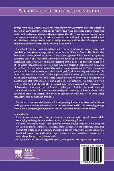Energy from Toxic Organic Waste for Heat and Power Generation presents a detailed analysis on using scientific methods to recover and reuse energy from Toxic waste. Dr. Barik and his team of expert authors recognize that there has been a growing rise in the quantum and diversity of toxic waste materials produced by human activity, and as such there is an increasing need to adopt new methods for the safe regeneration and minimization of waste produce around the world. It is predominately broken down into 5 sections: The first section provides and overview on the Toxic waste generation addressing the main components for the imbalance in ecosystem derived from human activity The second section sets out ways in which toxic waste can be managed through various methods such as chemical treatment, cracking and Electro-beam treatment The final 3 sections deliver an insight in to how energy can be extracted and recycled into power from waste energy and the challenges that these may offer This book is essential reference for engineering industry workers and students seeking to adopt new techniques for reducing toxic waste and in turn extracting energy from it whilst complying with pollution control standards from across the world.