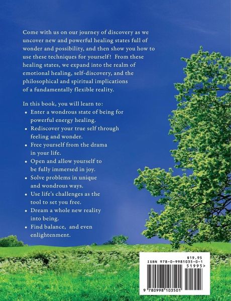 Come with us on a journey of discovery as we uncover new and powerful healing states full of wonder and possiblity, and then show you how to use these techniques for yourself! From these healing states, we expand into the realm of emotional healing, self-discovery, and the philosophical and spritual implications of a fundamentally flexible reality. In this book you will learn to: -Enter a wondrous state of being for powerful energy healing. -Rediscover your true self through feeling and wonder. -Free yourself from the drama in your life. -Be fully immersed in joy. -Solve problems in unique and wondrous ways. -Use life's challenges as a tool to set you free. -Dream a whole new reality into being. -Find balance and even enlightenment.