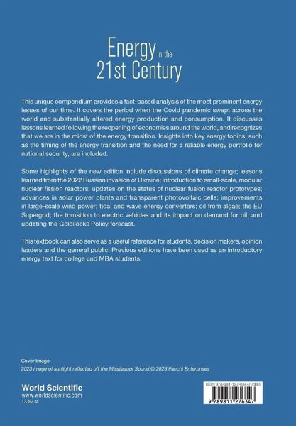This unique compendium provides a fact-based analysis of the most prominent energy issues of our time. It covers the period when the Covid pandemic swept across the world and substantially altered energy production and consumption. It discusses lessons learned following the reopening of economies around the world, and recognizes that we are in the midst of the energy transition. Insights into key energy topics, such as the timing of the energy transition and the need for a reliable energy portfolio for national security, are included. Some highlights of the new edition include discussions of climate change; lessons learned from the 2022 Russian invasion of Ukraine; introduction to small-scale, modular nuclear fission reactors; updates on the status of nuclear fusion reactor prototypes; advances in solar power plants and transparent photovoltaic cells; improvements in large-scale wind power; tidal and wave energy converters; oil from algae; the EU Supergrid; the transition to electric vehicles and its impact on demand for oil; and updating the Goldilocks Policy forecast. This textbook can also serve as a useful reference for students, decision makers, opinion leaders and the general public. Previous editions have been used as an introductory energy text for college and MBA students.
