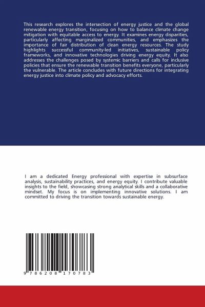 This research explores the intersection of energy justice and the global renewable energy transition, focusing on how to balance climate change mitigation with equitable access to energy. It examines energy disparities, particularly affecting marginalized communities, and emphasizes the importance of fair distribution of clean energy resources. The study highlights successful community-led initiatives, sustainable policy frameworks, and innovative technologies driving energy equity. It also addresses the challenges posed by systemic barriers and calls for inclusive policies that ensure the renewable transition benefits everyone, particularly the vulnerable. The article concludes with future directions for integrating energy justice into climate policy and advocacy efforts.