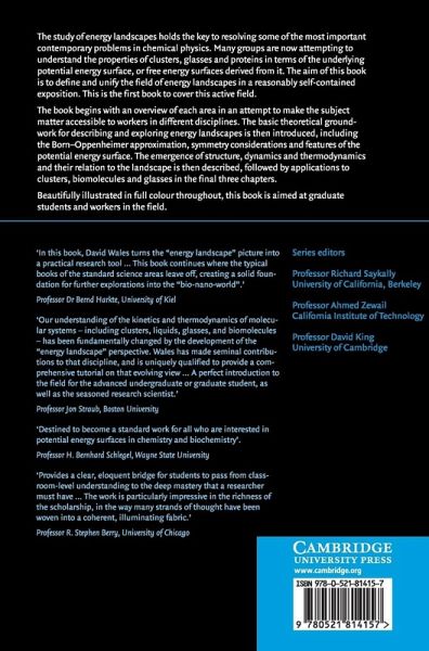 The study of energy landscapes holds the key to resolving some of the most important contemporary problems in chemical physics. Many groups are now attempting to understand the properties of clusters, glasses and proteins in terms of the underlying potential energy surface. The aim of this book is to define and unify the field of energy landscapes in a reasonably self-contained exposition. This is the first book to cover this active field. The book begins with an overview of each area in an attempt to make the subject matter accessible to workers in different disciplines. The basic theoretical groundwork for describing and exploring energy landscapes is then introduced followed by applications to clusters, biomolecules and glasses in the final chapters. Beautifully illustrated in full colour throughout, this book is aimed at graduate students and workers in the field.
