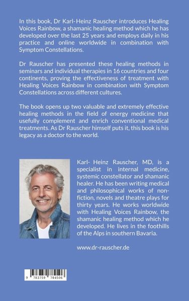 In this textbook, Dr Karl-Heinz Rauscher introduces Healing Voices Rainbow, a shamanic healing method which he has developed over the last 25 years and employs daily in his practice and online worldwide in combination with symptom constellations. Dr Rauscher has presented these healing methods in seminars and individual therapies in 16 countries and four continents, proving the effectiveness of treatment with Healing Voices Rainbow in combination with symptom constellations across different cultures. The book opens up two valuable and extremely effective healing methods in the field of energy medicine that usefully complement and enrich conventional medical treatments. As Dr Rauscher himself puts it, this book is his legacy as a doctor to the world. https://www.dr-rauscher.de/en/buch-healing-voices-rainbow