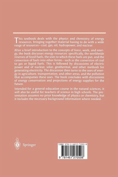 This book is directed primarily toward two types of readers. First, it is intended for use as a textbook for students in a liberal education course in science for non-science and non-engineering majors in college or univer sity. The technical level of presentation assumes no background in chemis try or physics on the part of the reader, and no science prerequisites or prior preparation are of concern. At the same time, elementary equations of chemistry and physics are included, particularly in relation to interconver sion of energy resources and utilization, for the benefit of the student with a more than passing interest in science who can learn much about these aspects of chemistry from equations presented in the book. Second, and considered to be of major concern and importance, it is intended for use as a reference book for teachers of science in the high schools and junior high schools. Because of the importance of energy in the daily life of the average citizen, a need is usually felt by the teacher at those levels to discuss various aspects of energy in daily life. However, often a source containing valid information is not available to the teacher. In the absence of a valid text, the teacher often resorts to information found in the press-information that is rarely accurate. The information presented in this book is soundly based in science, and in most cases the data presented are up-to-date as of the date of this writing.