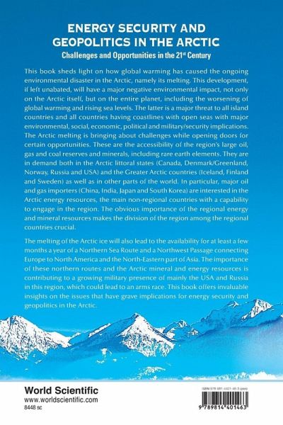 This book sheds light on how global warming has caused the ongoing environmental disaster in the Arctic, namely its melting. This development, if left unabated, will have a major negative environmental impact, not only on the Arctic itself, but on the entire planet, including the worsening of global warming and rising sea levels. The latter is a major threat to all island countries and all countries having coastlines with open seas with major environmental, social, economic, political and military/security implications. The Arctic melting is bringing about challenges while opening doors for certain opportunities. These are the accessibility of the region's large oil, gas and coal reserves and minerals, including rare earth elements. They are in demand both in the Arctic littoral states (Canada, Denmark/Greenland, Norway, Russia and USA) and the Greater Arctic countries (Iceland, Finland and Sweden) as well as in other parts of the world. In particular, major oil and gas importers (China, India, Japan and South Korea) are interested in the Arctic energy resources, the main non-regional countries with a capability to engage in the region. The obvious importance of the regional energy and mineral resources makes the division of the region among the regional countries crucial. The melting of the Arctic ice will also lead to the availability for at least a few months a year of a Northern Sea Route and a Northwest Passage connecting Europe to North America and the North-Eastern part of Asia. The importance of these northern routes and the Arctic mineral and energy resources is contributing to a growing military presence of mainly the USA and Russia in this region, which could lead to an arms race. This book offers invaluable insights on the issues that have grave implications for energy security and geopolitics in the arctic.