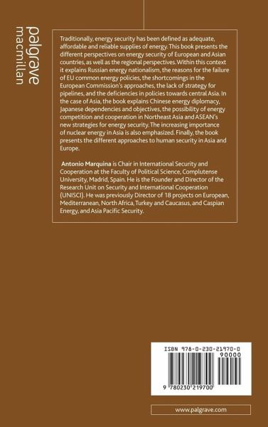 Introduction; Antonio Marquina German Debates on Energy Security and Impacts on Germany's 2007 EU Presidency; Frank Umbach Russia as an Energy Great Power: Consequences for EU Energy Security; Javier Morales Perceptions and Misperceptions of Energy Supply Security in Europe and the 'China Factor'; Michal Meidan The Southeast-Southwest European Energy Corridor; Antonio Marquina Greece's Energy Security Strategy: Between Energy Needs and Geopolitical Imperatives; Kostas Ifantis Between Continuity and Change: The Italian Approach to Energy Security; Gianluca Pastori Security of Supply: Spanish Policies in the EU Context; Javier de Quinto and Julián López Does China Have an 'Energy Diplomacy'? Reflections on China's Energy Security and its International Dimensions; Linda Jakobson China's Energy Policy and its Development; Shi Dan Energy Security Challenges to Asian Countries from Japan's Viewpoints; Shigeru Sudo Energy Security in Northeast Asia: Competition and Cooperation; Tai Hwan Lee Energy Security and Investment Opportunity in ASEAN; Akhmad Nidlom, Andini Desita, Evangeline L. Moises, Christopher G. Zamora and Weerawat Chantanakome Energy Security: An Indonesian Perspective; Edy Prasetyono Philippine Energy Policy: Implications for Human Security and Regional Cooperation; Carolina G. Hernandez Nuclear Energy: World Perspectives; Eduardo González and José María Martínez-Val Human Security: European and Asian Approaches; Antonio Marquina and Mely Caballero-Anthony